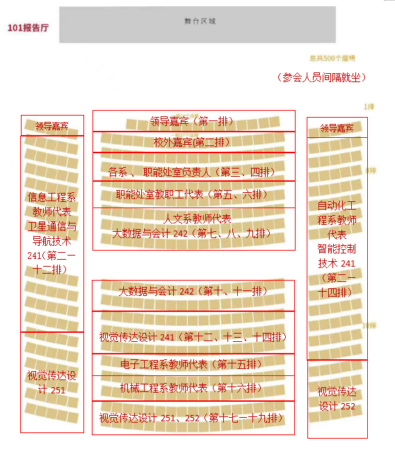 2、校领导、各系及职能处室负责人,教师职工代表(10人/系(支部))、学生代表(大数据与会计242、视觉传达设计241、卫星通信与导航技术241、智能控制技术241共计176人,视觉传达设计251和252新生)