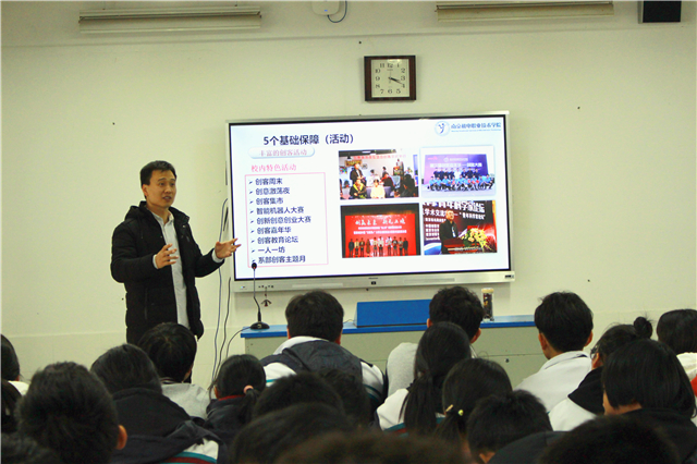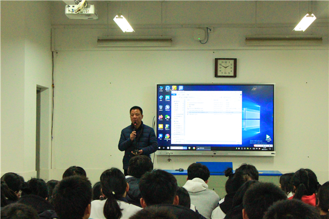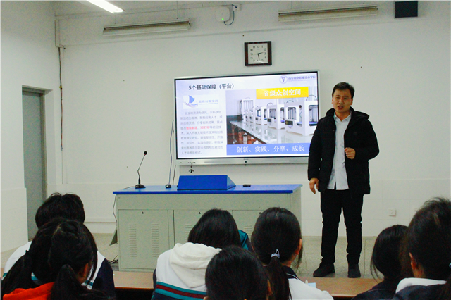 江苏省高淳中等专业学校副校长钱自豪对王主任的到来表示热烈欢迎。随后,王国珍主任结合自己的创新经历向在座师生介绍了我校倾力打造的创客校园文化。王主任说,江南网页版于2015年建设国内首家创客校园,倾力打造集创意、设计、制造于一体的蓝岛创客空间,系统设计了“54333”创客教育体系。在学校的积极引导和政策鼓励下,全院师生的创新能力显著提高,专利申请和授权数量不断增加,学校逐渐形成了“人人皆能创新,人人皆可创新”的创客校园环境。王主任勉励在座学生:创新需要积累,用手机上的备忘录把每一个生活中不经意的想法记录下来,不断挖掘生活中的痛点,思考并不断优化解决方案,在日积月累之中,创意也许就会出现在眼前。现场师生报以热烈的鼓掌。