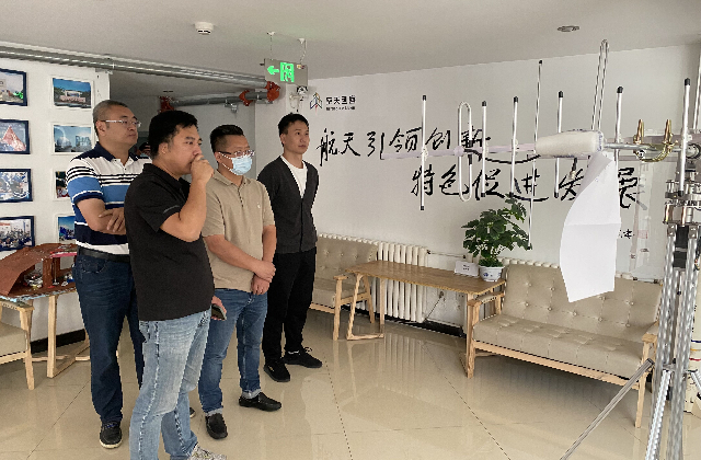 9月6日,我院一行人员来到空天创客考察,空天创客创始人耿赛猛介绍了单位在航空创客活动中的作品以及单位在航空创客教育工作中的成果,周书记就我院相关课程建设、教具设计问题和耿总做了进一步交流。
