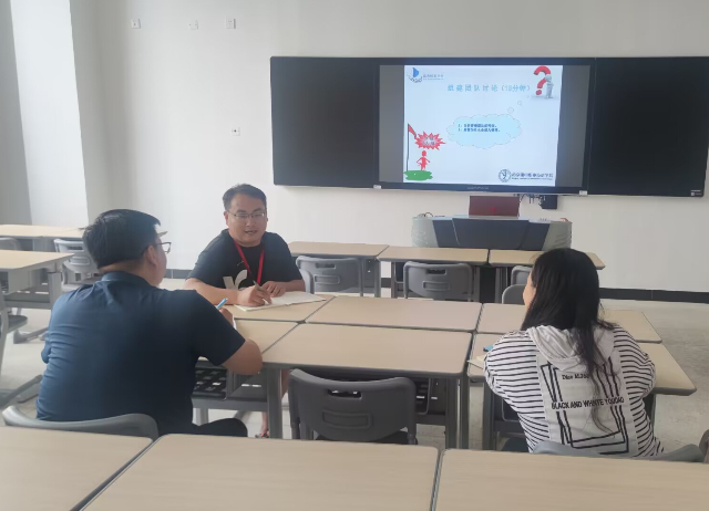 接着,创新教研室全体教师展开了热烈讨论。候俊提出创新思维课应该是学生讲、学生讨论、学生汇报,老师承担教学活动的组织、问题的提出、讨论后的反思等内容。朱妍焘表示在后期的教学过程中需要改变学生被动接受知识的传统教学模式,留给学生足够的自主学习、独立思考的空间和时间。