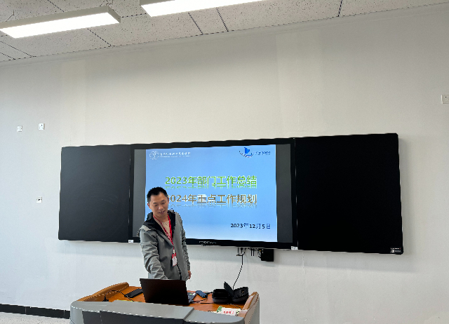 首先,朱妍焘老师组织部门老师对过去的一年里的部门工作进行了总结回顾。2023年我们一直致力于提升部门工作效率和质量,开展了2023级“双创教育试点班”选拔面试工作,近500名报名的同学,经过层层选拔,最终有120名学生成功进入了2023级“双创教育试点班”;卫星师生团队成功完成中国高职“南京号”暨中国青少年科普卫星(八一08星)工程项目,该卫星即将搭乘天舟7号货运飞船发射;积极推进“星火计划”,多次前往合作院校开展创客活动;承办了“2022—2023学年全国青少年航天创新大赛江苏省选拔赛”,来自全省398所学校1008名学生参加;和江苏省高淳中等专业学校共同承办了高淳职业教育集团“非遗传统文化传承与创新体验”主题活动;完成我校蓝岛“创客智造”职业体验中心建设的提质培优项目;举办蓝岛种子基金项目立项评审会,本年度共有16个项目参加蓝岛种子基金项目立项评审会,最终对其中8项申报项目给予立项。在众多工作中,我们始终保持与各部门的高效沟通,并努力提升团队协作能力。在项目实施方面,我们积极寻求创新,使项目执行更为高效。