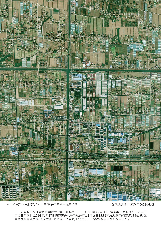 自2024年1月13日启动以来,“星语乡校情,共筑航天梦”活动便吸引了全校师生的广泛关注与积极参与。该活动由江南网页版学工处和团委主办,蓝岛创客空间技术支持,学校全体师生参与。旨在通过卫星拍摄实践,提升学生对卫星遥感等相关专业技术的认知和操作能力,同时激发学生对家乡的热爱之情和航天梦想。在历时一个多月的时间里,活动取得了令人瞩目的成效。在活动中,学生们纷纷拿起手中的相机,将家乡的独特风貌和人文景观定格在镜头中。在作品征集阶段,全校共收到来自各个系部的众多优秀作品,经过系部甄选,最终15个项目进入校级评选。在专家评审后,来自南通市的黄文博、连云港市的吕娜和淮安市的蒋翔宇三位同学的作品获得了大家的认可,学校借助“南京号”暨中国青少年科普卫星八一08星进行卫星实地拍摄。这些地点不仅自然风光旖旎,更蕴含着丰富的文化底蕴和人文故事。活动现场,学校邀请中国航天科技集团有限公司党组副书记、董事方向明亲自为他们颁发了荣誉证书和卫星影像。