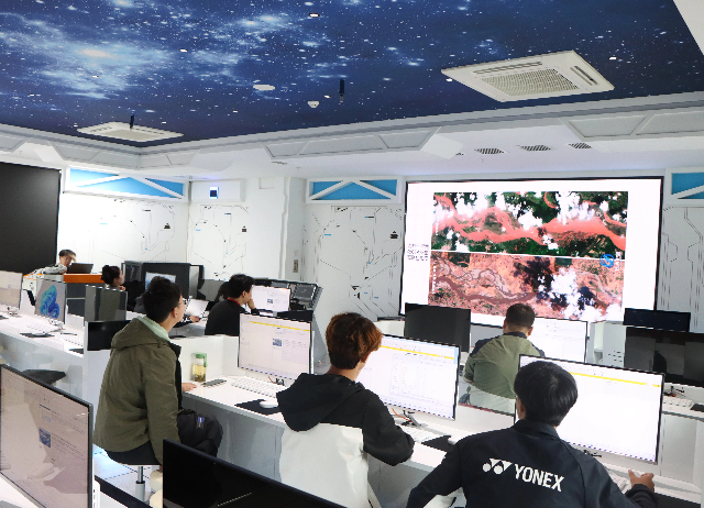 随后,彭芝珏在卫星测控大厅开展卫星遥感数据应用实践操作环节。通过长光卫星公司开发的协同编译软件,让师生在线共同操作,对AI识别的地物类型进行人工质检。