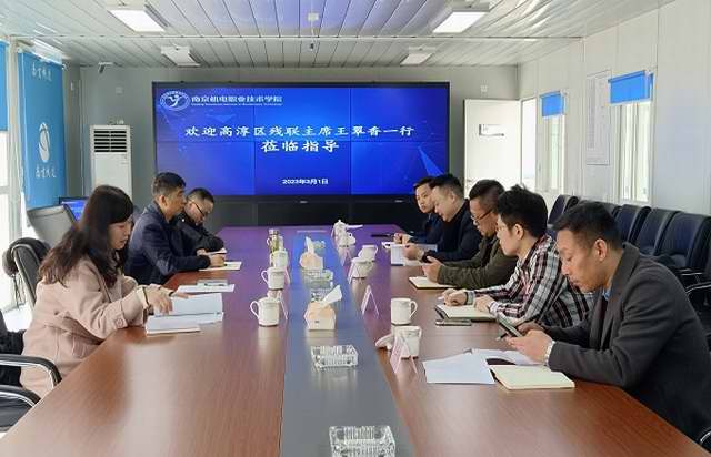 3月1日上午,高淳区残联主席王翠香一行在南京高职园孙爱国副主任的陪同下莅临学院调研交流。学院党委书记、院长周庆礼,党委委员、副院长孔德丽出席会议,学院培训处、自动化工程系等部门相关领导参加会议。