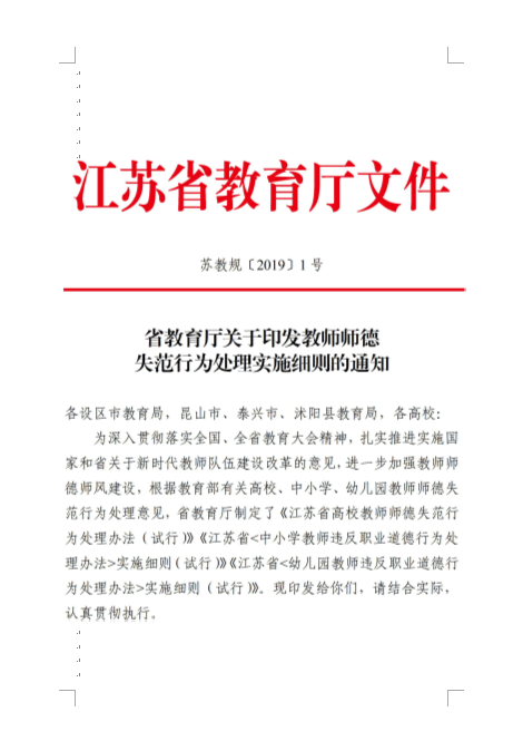 江苏省师德失范行为处理办法