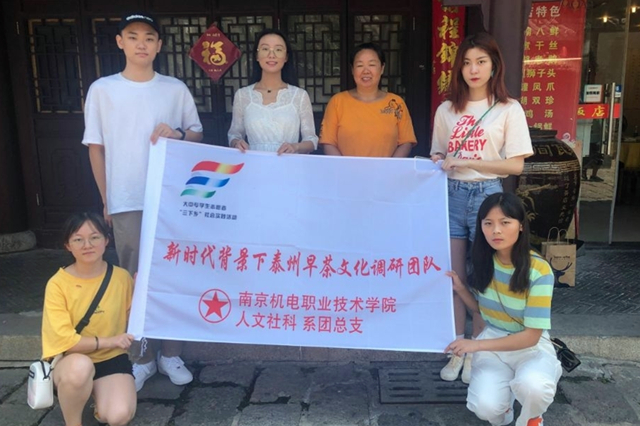 通过实践,团队成员深切感受到汉唐古郡,祥泰之州的独特魅力,体会泰州人在早茶中去品味那份柔柔的亲情和友情,那份幸福甜蜜和满足感,那份淡淡的乡愁。团队成员在参观学习中切实体悟改革开放40年来泰州与日俱进的巨大变化。(图文:人文社科系团总支 杨军、蒋洋、盛晓红)