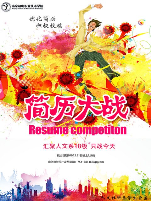 为进一步加强大学生的就业意识,提升自我认知与职业探索能力,全面提高大学生的综合素质,人文社科系学生会于2020年5月31日举办了“决战今日”简历设计大赛。