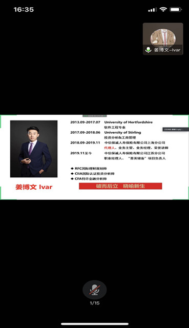 为了更好地扩宽学生就业渠道,2020年6月22号下午16:30,中信保诚人寿江苏省分公司在线上举办了宣讲招聘会。