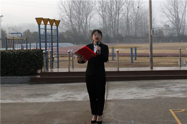 升旗仪式上,英姿飒爽的国旗护卫队迎着朝阳,伴随着激昂的《中国人民解放军进行曲》走向国旗台。在激昂的《义勇军进行曲》中,五星红旗徐徐展开,飘扬在校园上空。激发着全校师生不断向上的斗志,点燃了师生们的爱国热情。
