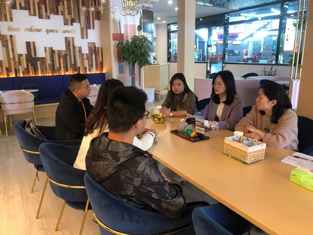 首先企业经理张先生带领老师们参观办公环境,并对每一处工位做了详细介绍。随后人事经理详细说明企业的岗位招聘标准和薪资待遇,并把每个岗位的工作职责、工作范围、工作时间都一一做了介绍。叶书记也为企业介绍了人文社科系的学生特点;顾老师也询问了一些关于学生实习期间的具体要求。通过1小时左右的洽谈,企业领导带领老师们参观了他们的商品仓库,并介绍了仓库工作的详细流程。实地的参观让老师们更直观地了解实习岗位的工作情况。
