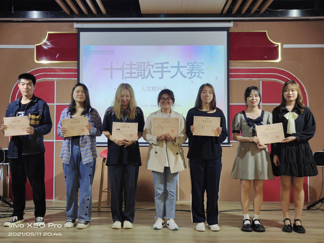 2021年5月11日晚上六点半,为进一步推进学院文艺活动的蓬勃发展,丰富校园文化的活跃氛围,给同学们一个展示自我风采和勇气的舞台,人文社科系举办了以“用音乐展现梦想,用旋律谱写青春”为主题的十佳歌手大赛。