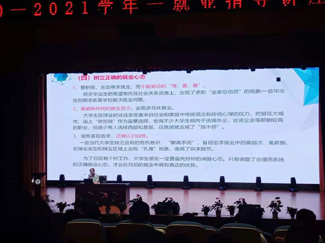 6月2日下午18:00,由人文社科系和自动化工程系联合举办的关于“认识自我,正确择业”就业主题讲座在报告厅举行。