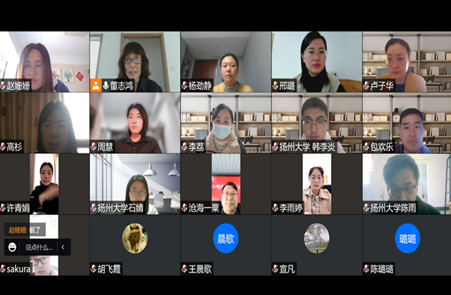 紧接着,兄弟院校各位老师纷纷发言。江苏医药职业学院马克思主义学院周慧副院长向大家介绍了该校线上开放课程建设的情况。其中,学生展示课程《精彩十分钟》结合医药职业学院的特点,围绕医患纠纷,提炼思政元素,做成了翻转课程。实践活动开展也走深走实,学生们经常去帮助社会福利院的孩子们、养老院的老人们做康复训练。扬州职业大学医学院党总支副书记卢子华向大家介绍了红医精神,并且与抗疫精神相对接,在思政课教学中融入红医精神,成为铸魂育人的重要元素。学生们去走访老红医,“00后”对话“九十后”,党史课堂搬到老红医家中去。“江苏队小可爱”得到了团中央的表彰,引领了朋辈教育。活动报道文章多次被学习强国与各类媒体转载。她还介绍了扬州职业大学机械学院“石榴花精神”铸魂育人的特色教育之路。另外,该校的线上课程《习近平新时代中国特色社会主义思想》与《榜样的力量》建设比较有特色。临沂大学邢璐老师指出,临沂大学十年前是“三无单位”,如今依托党建引领、平台支撑、项目推动、特色发展四条战略,闯出了一条新路。其中,沂蒙精神研究团队取得了很多成绩,获批了山东省一流课程、申报了30多项课题、发表了100多篇论文,斩获多项科研、教学成果奖等。扬州大学韩李炎老师介绍了该校红色文化宣讲团的建设。马院经常组织优秀的学生深入社区、基层,开展党史宣讲活动;参加扬州新四军研究基地史料收集、著作排版、历史活动史料整理等。