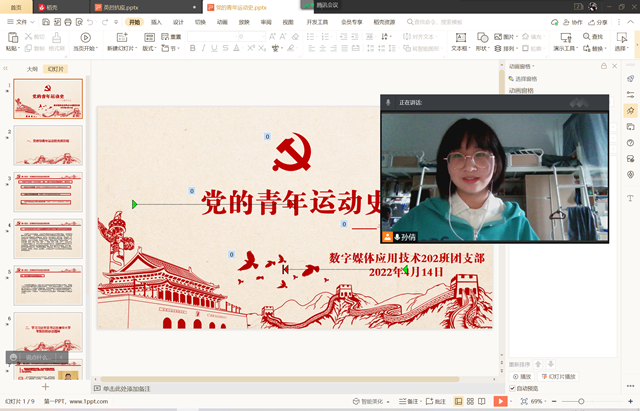 回望百年,青春向党,每一次搏击风浪的天空下,都激荡着青春的旋律;每一个勇毅前行的足迹中,都饱含着奋斗的艰辛。为深入学习贯彻习近平总书记关于青年工作的重要思想,团结引领广大团员青年永远跟党走、奋进新征程,以实际行动迎接党的二十大胜利召开,4月中下旬,人文社科系团总支组织各班级团支部开展了“喜迎二十大、永远跟党走、奋进新征程”主题教育实践活动之“党领导下的中国青年运动史”团课专题学习活动。