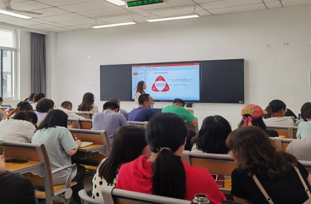 王老师以《百年大党与百年巨变——跨越时空看中国共产党与中国社会发展进步》为题,从“中国共产党是怎样的党”、“中国共产党带领中国社会发生的巨变”两部分内容带领大家进行深入学习。通过学习,老师们了解到中国共产党是敢于修正错误的党,中国共产党的高贵品质是勇于理论创新,中国共产党始终坚持正风肃纪、刮骨疗毒。可以说,中国共产党的一百年是不断自我革命的一百年。