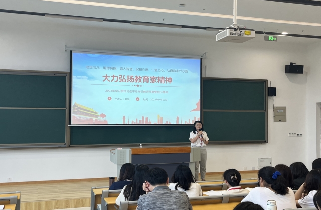 2023年9月10日是第三十九个教师节,也是党的二十大胜利召开后的第一个教师节。习近平总书记专门给全国优秀教师代表座谈会与会教师致信,向他们和全国广大教师及教育工作者致以节日问候和诚挚祝福,鲜明指出了中国特有的教育家精神的深刻内涵,对广大教师提出殷切期望,为新时代教师队伍建设指明了前进方向,提供了根本遵循。为深入学习贯彻习近平总书记教师节重要指示精神,9月19日下午,人文社科系在勤学楼101开展关于教育家精神的学习,本次学习由人文社科系党支部副书记叶绘主讲,人文社科系全体教职工参加。