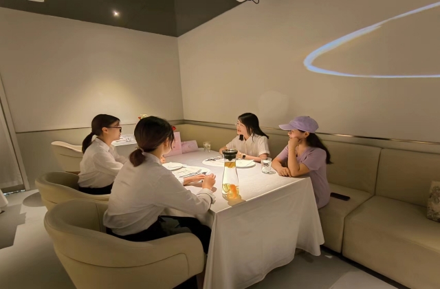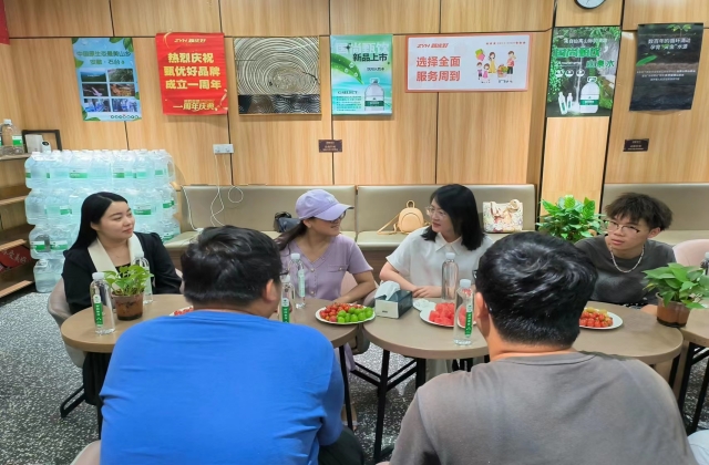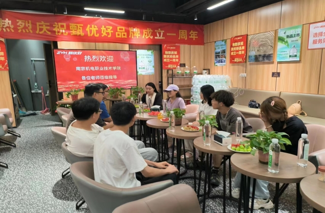 在南京花境餐饮有限公司座谈会上,老师表达了对学生们关心,同学们也讲述了自己实习的工作内容,并表示喜欢这个工作。叶书记鼓励同学们继续努力,争取更大的进步。梁老师也提醒同学们注意身体。
