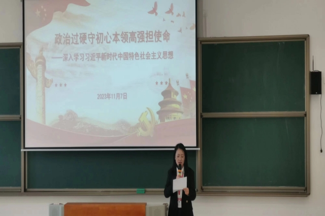习近平新时代中国特色社会主义思想是当代中国马克思主义、二十一世纪马克思主义,开辟了马克思主义中国化时代化新境界,是党和国家必须长期坚持的指导思想。为深入学习习近平新时代中国特色社会主义思想,人文社科系党支部于11月7日下午在勤学楼105特邀党委工作部部长周启国为全系教职工开展“政治过硬守初心 本领高强担使命”主题宣讲活动,南京高职园党工委委员、管委会副主任孙爱国作为党支部联系领导出席本次活动。活动由人文社科系党支部副书记叶绘主持。
