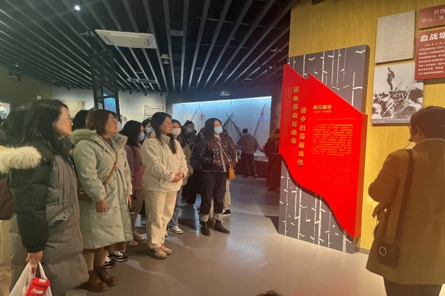 活动首先来到位于宜兴市太华镇的太华山新四军和苏南革命根据地纪念馆,这是苏南地区著名的爱国主义教育基地。太华山新四军和苏南抗日根据地纪念馆分为两层八个系列,是由序厅、尾厅以及六个主题板块构成,全面展示了新四军和苏南人民抗战的历程。大家通过讲解员的介绍,了解了当年新四军在太行如何开展统一战线工作,如何与太华及宜南山区人民结下了深厚的情谊,如何抗日救国、英勇奋战。