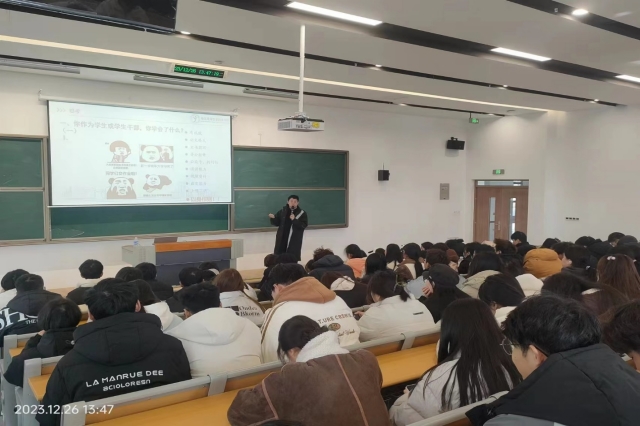 为引导同学们树立正确的学习导向,明确学习目标,人文社科系于2023年12月26日下午在善学楼103举办了主题为“以楷模为镜,正自身衣冠”会计专业优秀学子分享会。本次分享会特邀2019届优秀毕业生范灿担任主讲人,一百余名同学参加此次分享会。