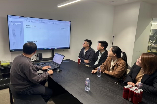 在三厘社创始人钱钧热情接待下,人文社科系教师团队首先参观了公司的设计工作室,钱总详细介绍了公司的业务范畴、市场定位和发展战略,并分享了行业内的最新动态和前沿技术。教师团队深入了解了公司的设计理念、工作流程和技术应用。