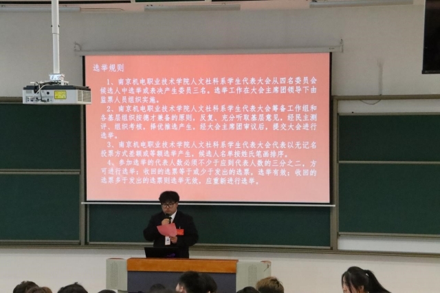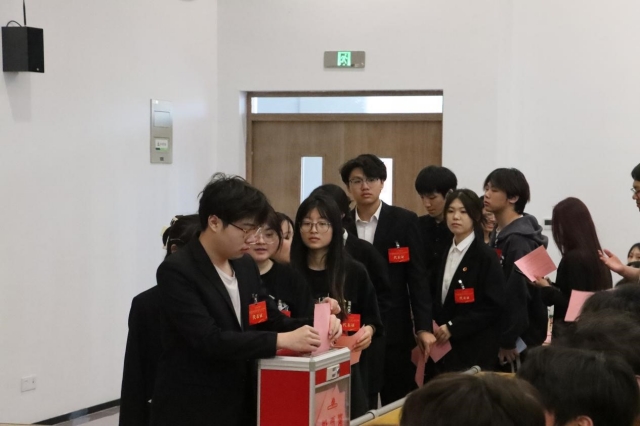 随后,大会进入选举阶段,由学生会副主席刘爽仡宣读选票办法公布大会总监票人、监票人名单,邀请校学生会观摩督导组成员致辞,与会代表有序进行投票。会议秉持着公平、公正、公开的原则,以无记名投票方式差额选举出葛子涵、张书雯、吴尚恒3名同学当选为江南网页版人文社科系第五届学生代表大会委员会委员。
