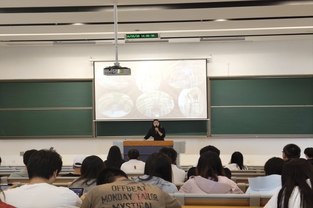 随后,曾在南京盛庭科技有限公司实习现已成为正式员工的学姐苌丝雨,分享了自己在公司的工作经历和心得。她以自己亲身参与的婚礼堂设计和装潢设计项目为例,向学弟学妹们展示了设计的魅力和挑战。苌丝雨的分享让学生们深刻感受到,设计不仅仅是一份工作,更是一种对美好生活的追求和创造。