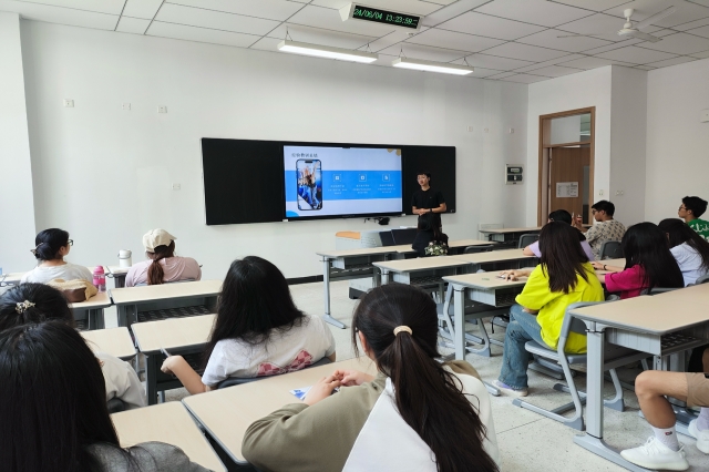 紧接着,崔洪硕同学通过多媒体设备向在场同学展示了去年优秀获奖作品的精彩片段,让同学们更加直观地感受到了英语趣配音的魅力。现场气氛瞬间被点燃。在交流环节中,同学们积极发言,提出了许多关于英语趣配音的问题和建议。崔洪硕同学耐心解答,并针对同学们的疑问给出了具体的指导和建议。现场气氛热烈,大家互相学习、共同进步。