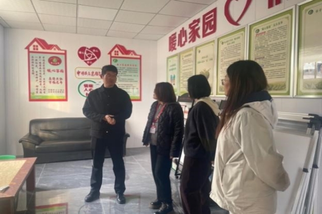 随后,乡镇领导带领老师团队们参观了平干圩党建中心。党建中心内,丰富的展板展示了乡镇党建工作的历程、成果和特色。教师团队们认真听取了乡镇党建负责人关于党建中心的功能布局、活动开展以及服务群众等方面的介绍。双方就未来如何进一步加强校地交流合作、推动产学研一体化等问题进行了深入交流和探讨。
