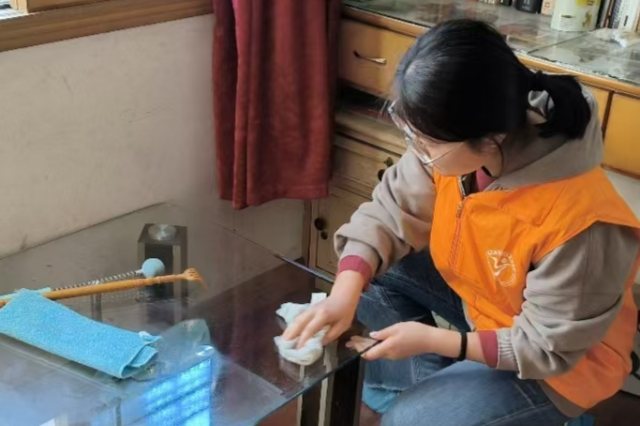 活动中,志愿者们分成若干个小组,分批次地上门拜访独居老人。他们每个人都拿着清洁工具,有的负责清扫地面,仔细地清扫每一个角落,不放过任何灰尘和杂物;有的整理床铺,将被子叠得方方正正,让床铺看起来整洁又舒适;还有的擦拭家具,从床头柜到桌椅板凳,把家具表面擦得一尘不染。在打扫过程中,志愿者们还会和老人聊聊家常,询问老人的生活习惯,确保在打扫的同时不会弄乱老人常用的物品。过程中,老人们感受到了志愿者们的用心,脸上充满了笑容。