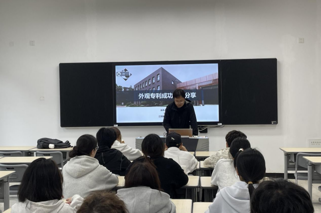 活动伊始,因恰逢学校正在如火如荼地举办“2025年知识产权宣传周”活动,系部结合活动总体安排,在学校科研与校企合作处的主导下邀请了江苏致邦律师事务所的专利代理人高艺轩为在座学干们开展了一场题为“外观专利成功案例分享”的专题讲座。