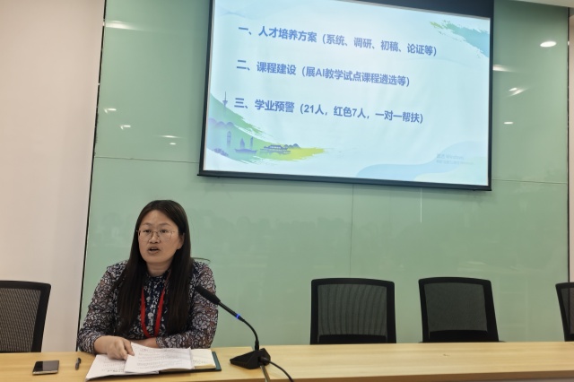系主任曹安林围绕职教发展展开深度研讨,提出要积极推进深化产教融合工作,构建职教与产业协调发展新生态,通过校企合作、资源共享等方式,提升人才培养质量与产业需求契合度。在国有资产排查情况汇报中,她提醒全体人员持续完善相关工作;针对三创大赛,要求各部门协同配合,争取取得优异成绩。此外,她还强调日常安全工作的重要性,重点提及网络安全,呼吁大家提高防范意识,筑牢安全防线。