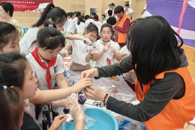 书法绘画区域,孩子们在空白团扇上尽情挥洒笔墨,将自己的创意和想法通过书法和绘画展现出来,现场诞生了许多独一无二的团扇作品。无人机团队展示和室内试飞活动更是将现场气氛推向高潮,技术人员讲解完无人机原理和操作方法后,志愿者们一对一指导孩子们进行室内试飞,让他们近距离感受无人机的魅力。3D打印技术展示区,技术人员介绍3D打印的发展历程、原理和应用案例,并现场打印小物件,志愿者们引导孩子们有序围观,解答他们关于打印过程的疑问。扎染项目中,孩子们在老师的指导下,通过扎结布料、染色,制作出色彩斑斓的扎染作品,志愿者们帮助孩子们准备染料、清洗工具,让他们尽情感受传统手工艺的独特魅力。