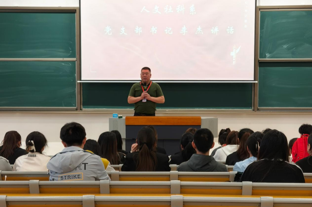 竞选演讲结束后,李杰发表讲话。他对过去一届团委的工作给予了充分肯定,高度赞扬了团委成员们在思想引领、组织建设、活动开展等方面取得的优异成绩。同时,李杰也对新一届团委班子提出了殷切期望,他强调,新一届团委成员要坚定理想信念,强化责任担当,不断提升自身综合素质和工作能力,团结带领广大团员青年积极进取、开拓创新,为人文社科系的发展和共青团事业贡献更多青春力量。