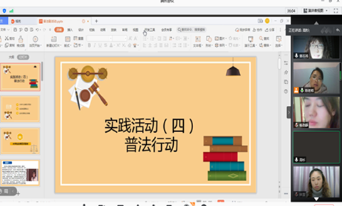 首先,陈璐璐老师围绕着实践项目(四)——普法行动的教学设计进行了详细的讲解。教学内容主要包括大学生法治素养的现状、校园普法教育的重要性、实践作业的具体要求。她指出,此次实践项目旨在使同学们知晓法律就在身边,触犯法律必然会付出沉重代价,并引导大学生正确运用法律武器维护自己的合法权益。