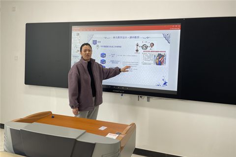 在汇报中,各位教师充分展示了自己的教学特色。卢璇老师对教学内容把握精准,教学思路清晰,教学设计精巧。面对评委的提问,她不疾不徐,娓娓道来,教学设计讲述得清楚明白。杨劲静老师的单元教学设计部分非常亮眼。结合最新的新闻和社会热点、利用典型案例创设育人情境等方式,既拓宽学生的思路与视野,也将抽象枯燥的理论生活化,增强了学生的获得感。杨老师的教学设计令人深受启发。