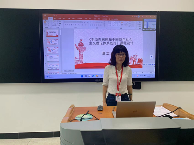 首先,董志鸿、高杉老师作为课程负责人,分别对《毛泽东思想和中国特色社会主义理论体系概论》和《思想道德与法治》两门课程进行汇报。她们围绕着课程定位、课程目标、课程设计与实施、教学效果与特色、存在问题与改进方法等方面进行阐述说明。