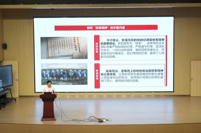 话剧展演结束后,江南网页版马克思主义学院的毛莉老师以“讲好新四军故事,凝聚奋进力量”为主题,为两校师生呈现了一堂别开生面的思政课。毛莉老师以新四军话剧内容为切入点,结合多媒体资源与互动讨论,引导学生从历史视角思考当代青年的责任,课堂气氛活跃,学生参与度高。