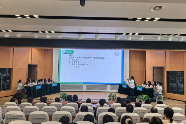 竞答环节设置必答与抢答两类题型,内容涵盖八项规定出台背景、核心要义及实施成效等知识点。参赛的马克思主义学院教师代表、人文社科系与高淳宝塔小学教师代表组成的队伍,以扎实的理论功底完成必答题基础考验,更在抢答环节中通过政策要点的灵活运用展现学习成效,最终马克思主义学院获一等奖,宝塔小学获二等奖,人文社科系获三等奖,以竞赛形式推动理论学习入脑入心。