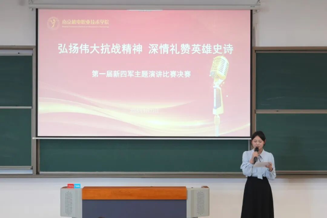 为深入学习贯彻落实习近平总书记关于“用好红色资源,传承好红色基因”的重要指示精神,纪念中国人民抗日战争暨世界反法西斯战争胜利80周年,2025年9月23日,马克思主义学院成功举办“弘扬伟大抗战精神,深情礼赞英雄史诗”第一届新四军主题演讲比赛总决赛。南京高职园管委会宣传统战干事、团工委委员黄启睿,党委宣传部金慧敏、贺竞男,党委工作部辛鸽,校长办公室潘久伟五位老师担任大赛评委。马克思主义学院全体教师及各系学生代表现场观摩比赛。