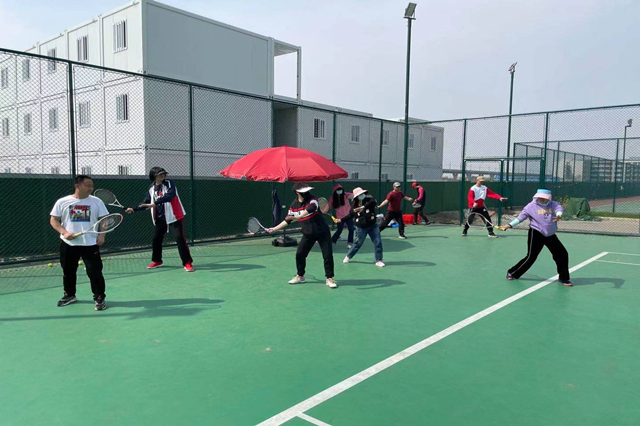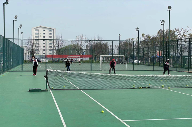 本周体育教研室设计教研活动是网球课集体备课的第二次课,今天的内容为复习正手握拍和正手击球动作,通过多球练习让每一位老师感受并掌握正确的击球动作、击球点以及球和球拍的接触部位。然后对在移动中的半开放式打法的正手击球脚步移动做了详细的讲解和分解示范教学,休息期间给大家讲解李娜在国际比赛中对该技术动作的应用并取得优异成绩的事迹,提高大家对网球运动的学习兴趣、开拓知识面增强民族自信心。