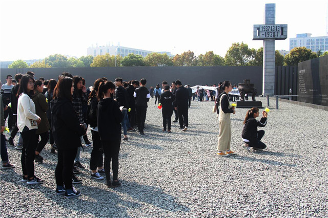 嘹亮的国歌响起,染着革命先辈们鲜血的五星红旗冉冉升起。在纪念馆警钟前,同学们庄严肃穆地向死难同胞默哀致敬。青年学子纷纷向死难者献上洁白的菊花,表达着对革命烈士及死难同胞的无限敬仰和深切怀念。随后,同学们参观了侵华日军南京大屠杀遇难同胞纪念馆,祭奠广场上,“遇难者300000”的石壁和大型石雕母亲像格外醒目,时刻提醒日本侵略者令人发指的罪恶行径。