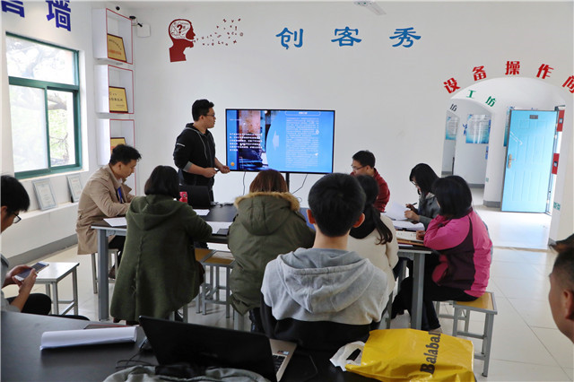 为引导、激励更多学生积极投身学术科技创新实践,推广“挑战杯”品牌影响力,学院团委组织的2019年“挑战杯-彩虹人生”创新创效创业大赛校内选拔赛答辩评审会在蓝岛二楼举行。出席本次评审会的评委有:蓝岛创客空间主任王国珍、蓝岛创客空间黄克瑶老师、蓝岛创客空间杨阳老师、机械工程系李路娜老师、自动化工程系王晓峰老师、电子工程系李俊娇老师、人文社科系孟秋彤老师以及科研处王子灿老师。评审会由团委副书记叶绘主持。