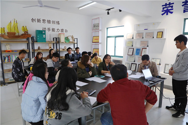 本次校内选拔赛以公开答辩的形式进行,每位同学有10分钟的时间通过PPT或其他形式来阐述自己的产品,由评委老师们进行点评与提问。现场答辩中,9位同学激情饱满,他们各自向评委们展示了创客项目的特点。答辩同学分别从项目背景分析、项目的开发与意义、市场及竞争分析、营销策略、盈利模式、经济及财务状况、融资方案和回报、经营管理的运作方案、风险管理等方面进行创客项目和运营思路的讲解。每个项目展示完成之后,评委老师们根据各同学创客计划书的可行性、资金分配、竞争优势、公司战略等方面进行提问,并提出了指导意见。