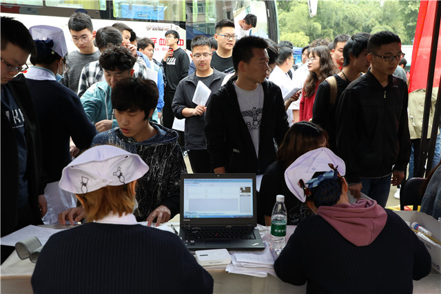 活动现场共分为登记区、体检区、献血区、休息区、领证区五大区域。献血者们首先要填写个人信息及报名单,而后进行血压的检测、化验血型等基本检测,献血过程中志愿者们积极配合工作人员工作,耐心解答同学们的问题及以对话的方式缓解同学们的紧张情绪。除此之外,血液中心还准备了热水、面包、饮料等营养补给品。