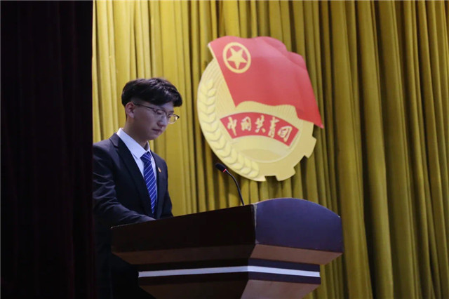 会上,全体院系团学干部在学生团委副书记孙佳怡的带领下重温了入团誓词,通过高昂的集体宣誓活动,展现出我院团学干部争做一名合格的学生干部的毅力和决心。