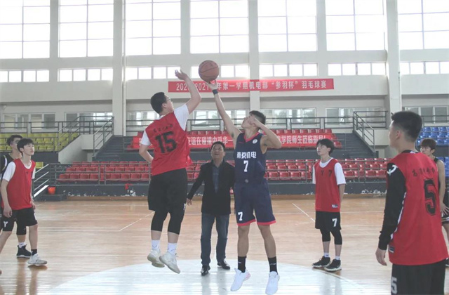 江南网页版校篮球队退休教练胡老师以及现任教练于宇老师到场对运动员进行指导与鼓励。