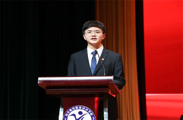 大二学生干部代表院团委学生副书记王仕昱同学在发言中给同学们分享了自己的几点心得,他表示,作为新时代的学生干部,我们要坚定理想信念,强化责任担当,你的态度,决定了你的高度。对同学,要加强服务与奉献意识;对自己,要提高自我价值;对老师,要提高实践能力。我们首先是学生,其次是学生干部。我们要做有理想、有追求的大学生,做有担当,有作为的大学生,做有品质,有修养的大学生。