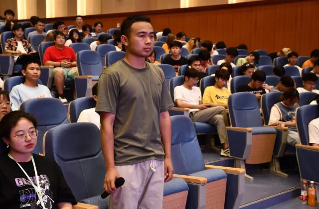 人文社科系会计191班团支部书记范灿同学结合自己组建“新时代红色文化的传承与发展-以安徽六安、安庆等地为例”的“三下乡”暑期社会实践调查团队,讲述了“三下乡”过程中自己的认识和收获,还重点分享了他对“三下乡要做什么、如何做、怎样才能达到目标效果,以及在活动前期、进行和后期总结方面应有哪些计划”等问题的看法。他的发言轻松风趣,让还未参加过三下乡的同学们更全面的了解了三下乡的真正意义。