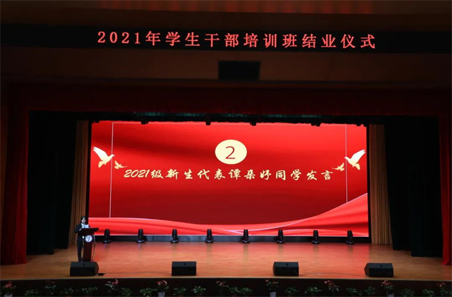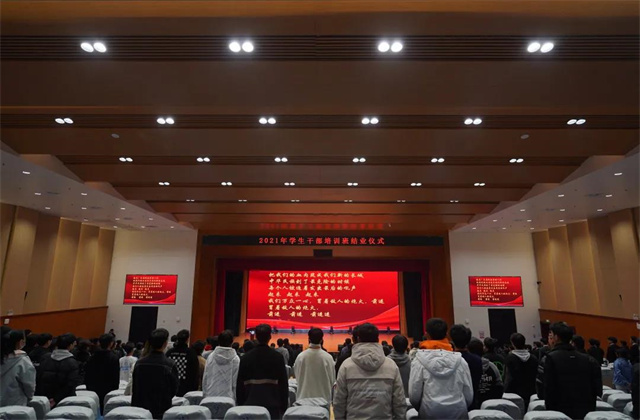 2021年12月7日,2021年学生干部培训班结业仪式在星梦馆多功能厅举行。学生工作处处长张宝中、机械工程系党支部副书记李杰、自动化工程系党支部副书记高水冕、人文社科系党支部副书记叶绘、团委书记唐钰峤、团委老师金慧敏出席结业仪式,院系两级学生干部参加结业仪式。结业仪式由团委学生副书记王仕昱同学主持。